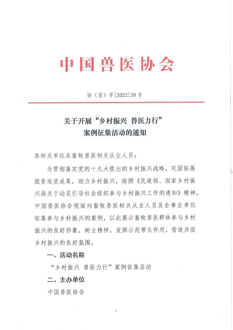 关于开展“乡村振兴 兽医力行”案例征集活动的通知