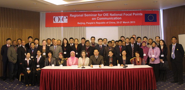 3月25日-27日,世界动物卫生组织(OIE)亚洲、远东和大洋洲地区委员会(以下简称“亚太区”)国家协调联系点研讨会在北京召开。这是OIE为加强亚太区各成员兽医部门能力建设,重点提高信息交流传播意识,有效应对新兴媒体,处理重大动物疫情和食品安全危机等方面能力和水平而举办的一次重要会议。来自亚太区29个国家和地区,以及中国农业部有关兽医直属单位和科研院所的代表参加了会议。农业部兽医局局长张仲秋、OIE亚太区代表石桥智子、OIE联络部主任马玛甘尼出席研讨会开幕式并致辞。