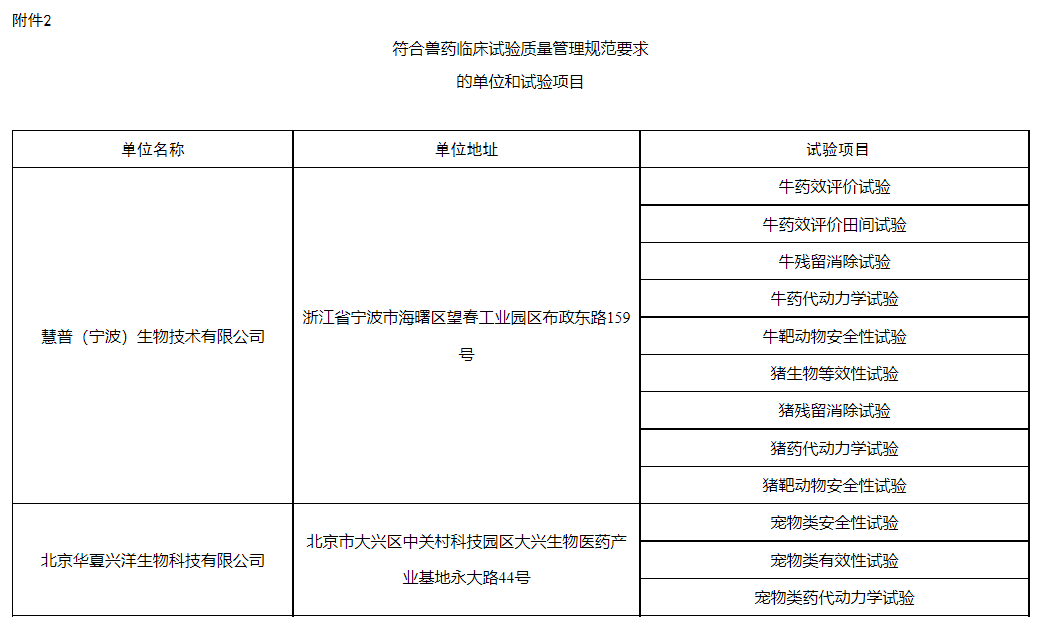 2.符合兽药临床试验质量管理规范要求的单位和试验项目