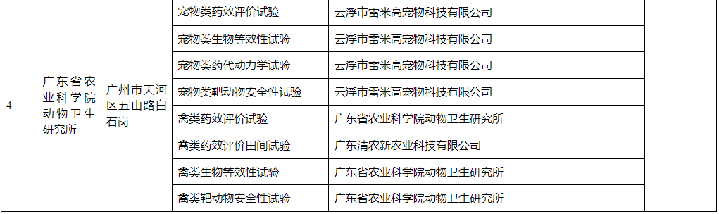符合兽药GCP要求的单位和试验项目