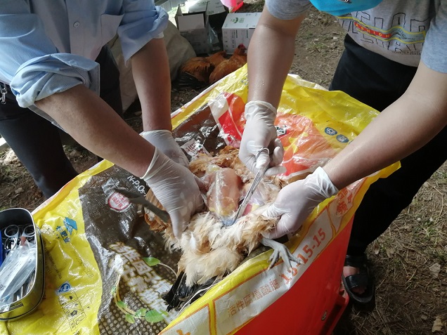 图2:畜牧兽医人员的医者仁心——解剖肉鸡